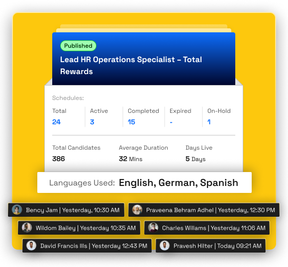 Break the English barrier. Let candidates speak comfortably, and get insights that actually reflect their potential.