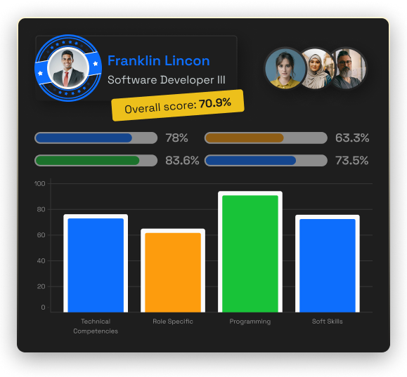 See exactly how candidates perform — while the interview’s still running. No blind spots. No delays. Just clarity.